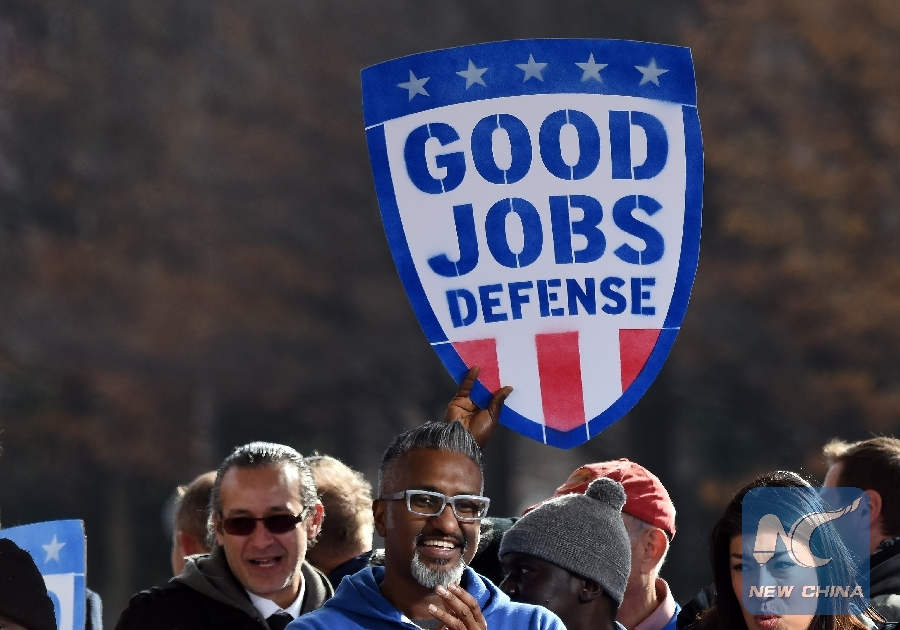 File Photo: People attend a rally calling for "more jobs and better wages" which was promised by President-elect Donald J. Trump during his campaign, in Washington D.C., the United States, Dec. 7, 2016. (Xinhua/Yin Bogu)