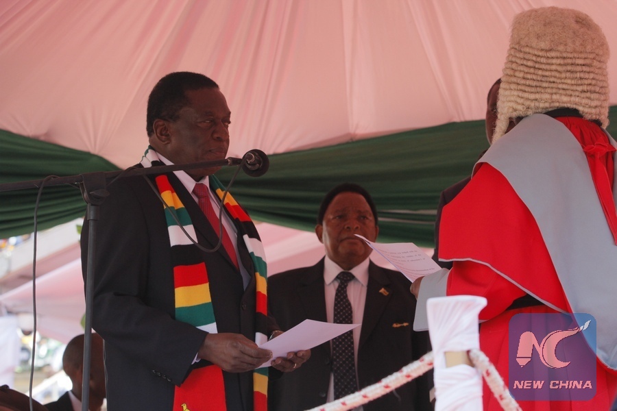 HARARE, Sept. 10 (Xinhua) -- Zimbabwean President Emmerson Mnangagwa on Monday swore into office his new 20-member cabinet that will drive Zimbabwe's economic revival in the next five years.