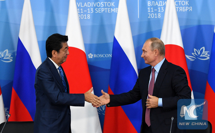 VLADIVOSTOK, Sept. 10 (Xinhua) -- Russian President Vladimir Putin held talks with Japanese Prime Minister Shinzo Abe in Russia's Far Eastern port city of Vladivostok on Monday.