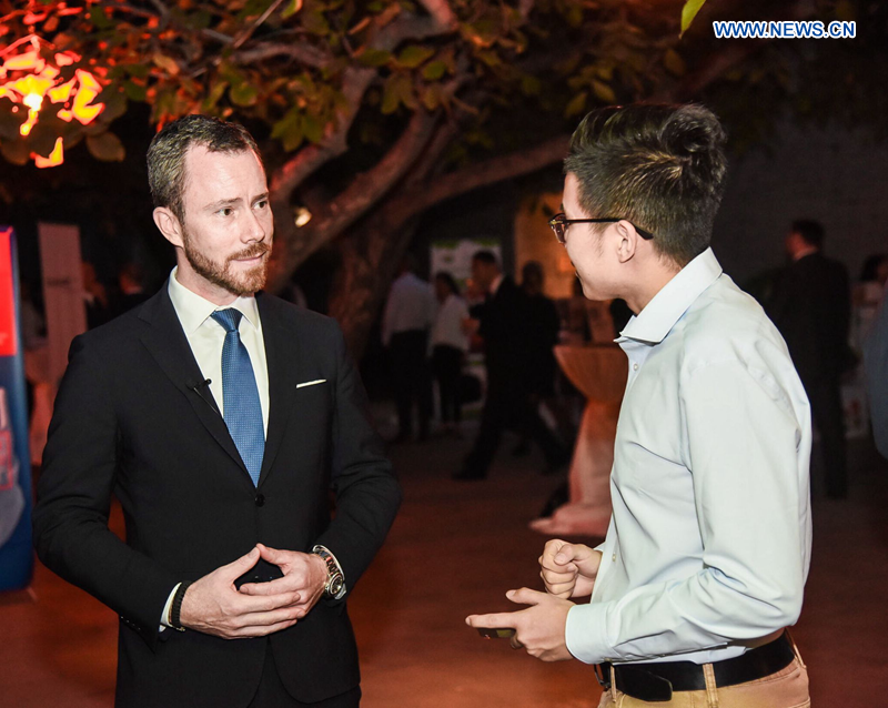 Danish Minister for Environment and Food Jakob Ellemann-Jensen gives an exclusive interview to Xinhuanet in Beijing, capital of China, Sept. 19, 2018. (Photo provided by the Royal Danish Embassy in Beijing)