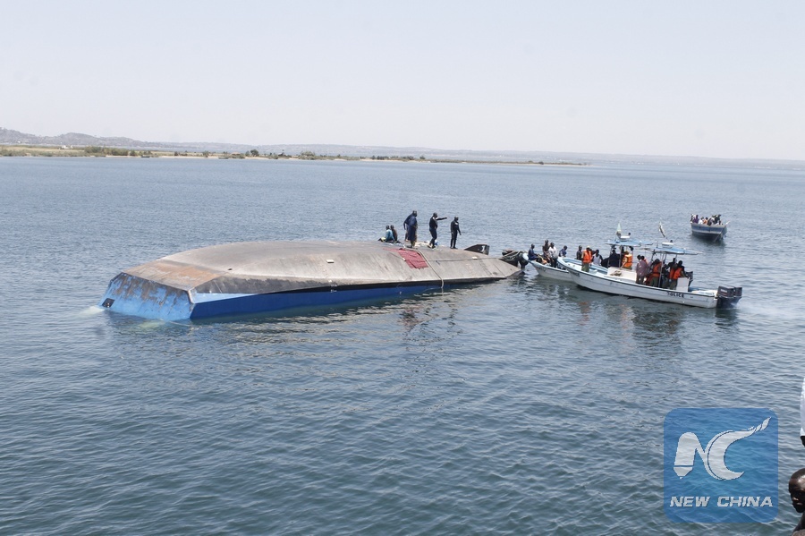 Photo taken on Sept. 22 shows the scene of rescue. Tanzanian authorities said on Saturday the death toll in the ferry that capsized in Lake Victoria on Thursday rose to 209 as more bodies were expected to be pulled off one of Africa's great lakes. (Xinhua)