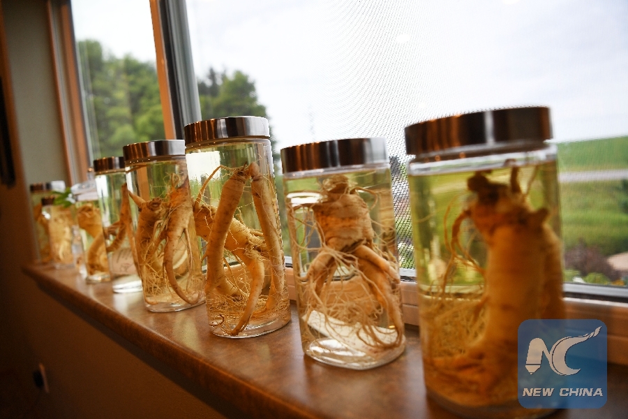 File photo taken on July 25, 2018 shows ginsengs in bottles at Joe Heil's home in Wausau, Wisconsin, the United States. (Xinhua/Liu Jie)