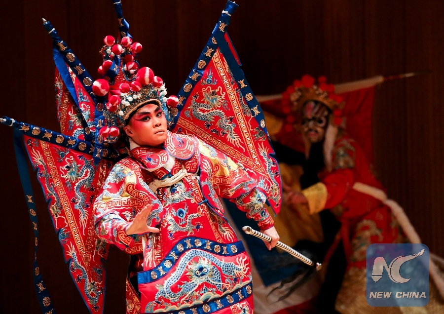 Xu Qiushi from the Confucius Institute of Chinese Opera (CICO) at Binghamton University (BU) performs during the show titled "Amazing Chinese Opera" at the University at Buffalo in Buffalo city of New York State, the United States, Nov. 16, 2018. (Xinhua/Wang Ying)