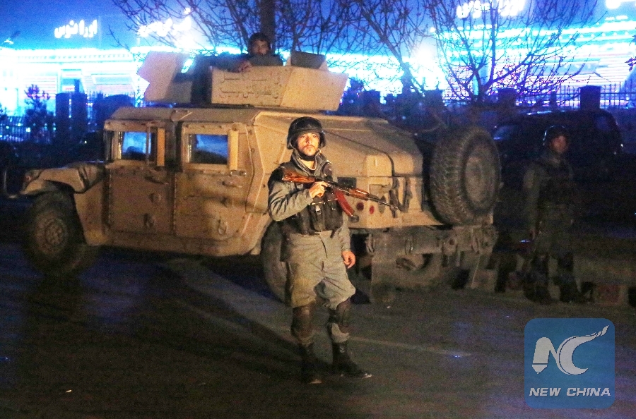 An Afghan security force member stands guard at the site of a suicide bombing in Kabul, capital of Afghanistan, on Nov. 20, 2018. (Xinhua/Rahmat Alizadah)