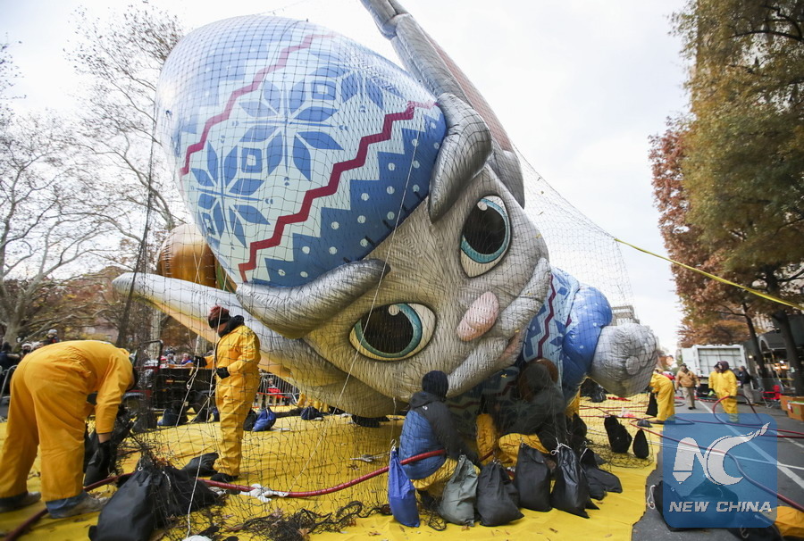 NEW YORK, Nov. 21 (Xinhua) -- More than 3.5 million people are expected to line the streets of Manhattan, New York City, to watch the dazzling display of balloons and floats at the 92nd annual Macy's Thanksgiving Day Parade on Thursday.