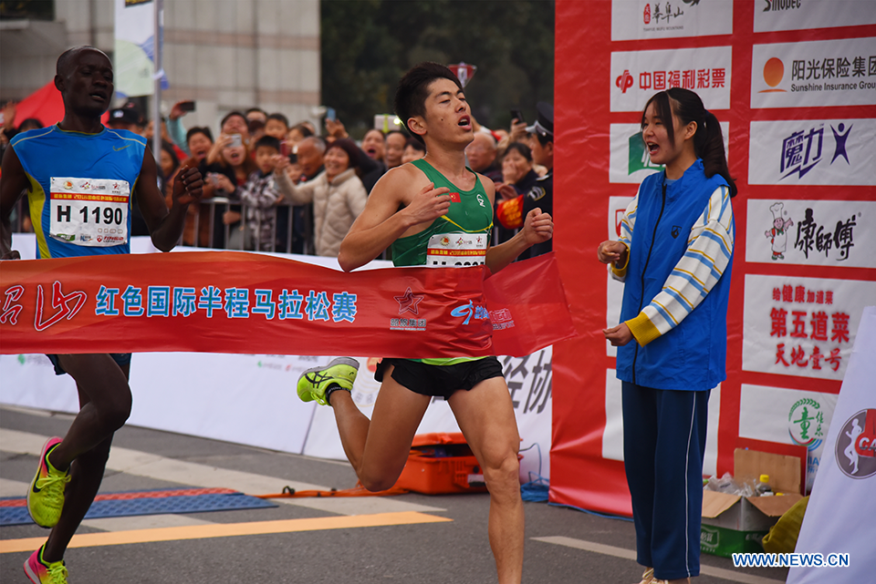 Chinese runner Lin Xin from Xiangtan University wins the men's race.