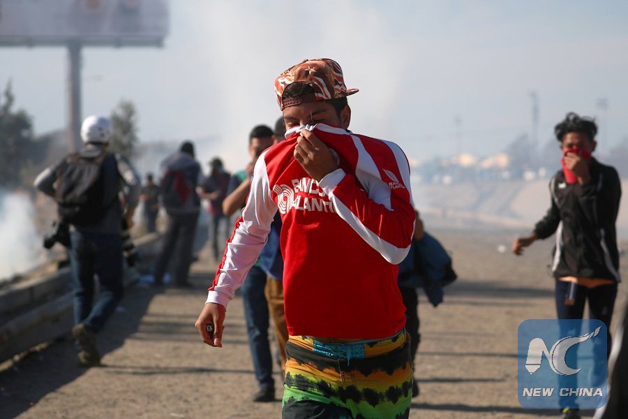 LOS ANGELES, Nov. 25 (Xinhua) -- The U.S. border patrol on Sunday suspended all traffic at a busy crossing between San Diego, California and Mexico's Tijuana, where thousands of migrants are massing in a makeshift shelter to apply for asylum.