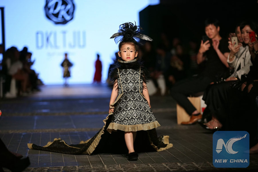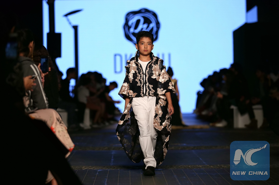 A model displays a Chinese kid brand during the Dubai Fashion Days in Dubai, the United Arab Emirates, on Nov. 24, 2018. (Xinhua/Mahmoud Khaled)