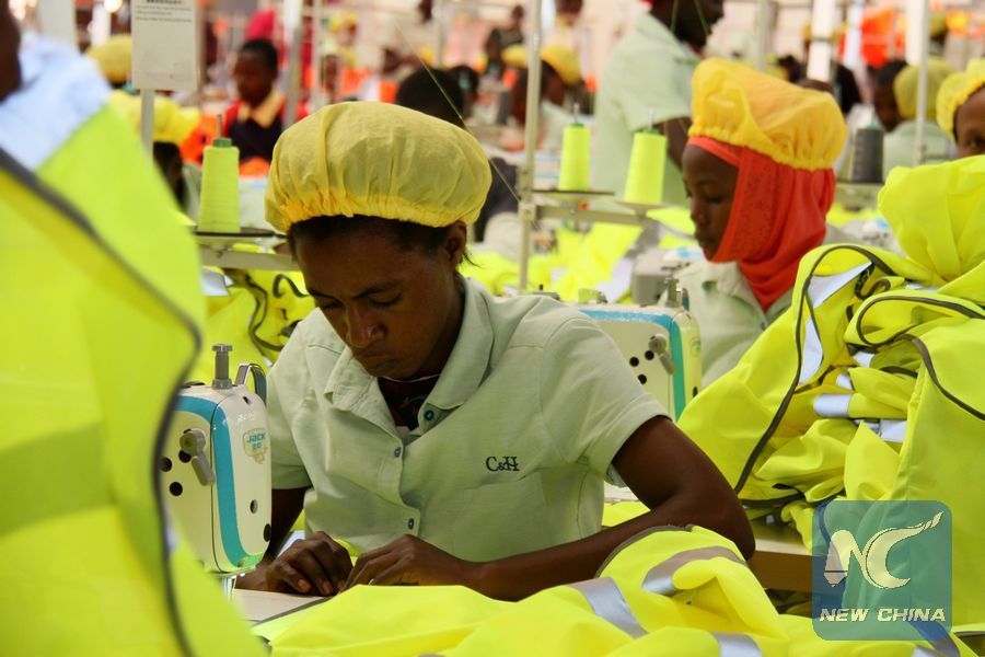 File photo shows Rwandan workers operate sewing machine at a workshop of C&H Garments Ltd in Kigali, capital city of Rwanda on April 30, 2018. (Xinhua/Lyu Tianran)