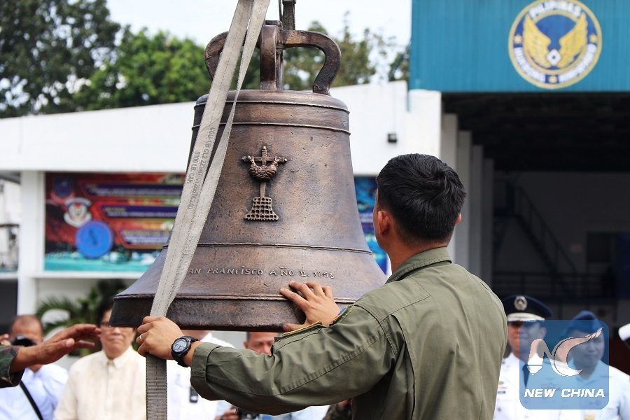 Photo taken on Dec. 11, 2018 shows a bell returning ceremony held at a Philippine air force base in Manila, the Philippines. (Xinhua/Zheng Xin)