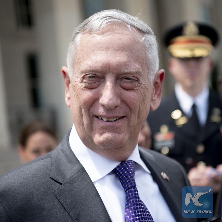 File photo shows the U.S. Defense Secretary James Mattis at the Pentagon, Virginia, the United States, on Aug. 7, 2018. (Xinhua/Liu Jie)