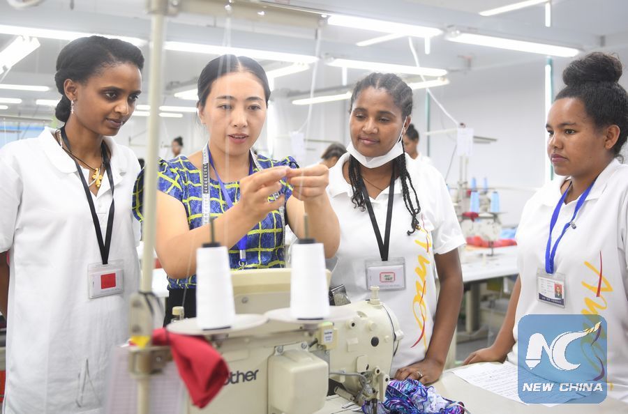 File photo shows an Ethiopian worker of ANTEX Fashion Group learns sewing skill at a plant in Huzhou, east China's Zhejiang Province, Aug. 30, 2018.(Xinhua/Weng Xinyang)