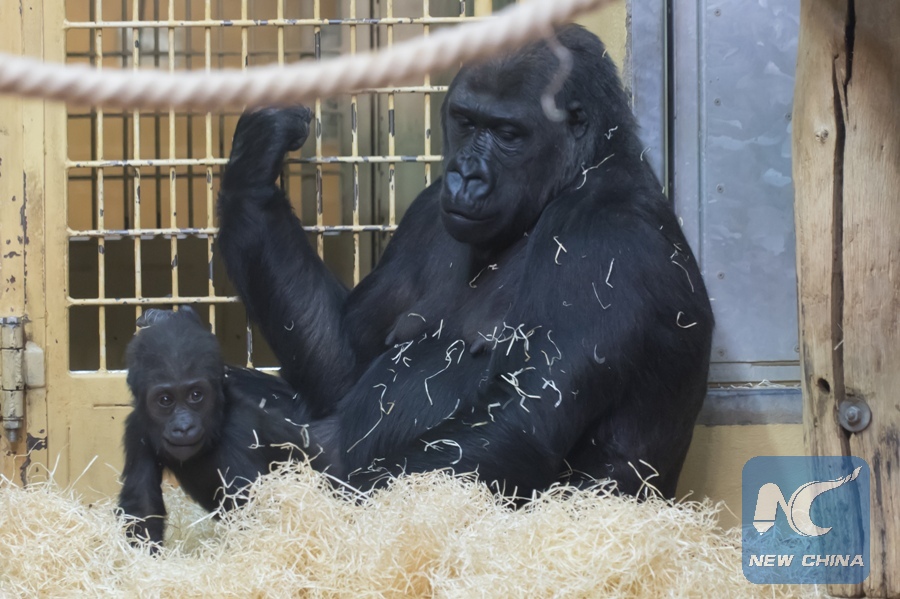 A gorilla and its baby are seen at the Metropolitan Zoo and Botanical Garden of Budapest, Hungary on Jan. 4, 2019. According to the "census" held at the beginning of the new year, the Metropolitan Zoo and Botanical Garden of Budapest is home to 8,807 animals from 856 different species, according to a statement published here on Friday by the zoo. (Xinhua/Attila Volgyi)