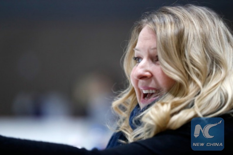 Canadian choreographer Lori Nichol in a training session with the Chinese figure skating team at Shougang on Jan. 9. (Xinhua/Wang Lili)