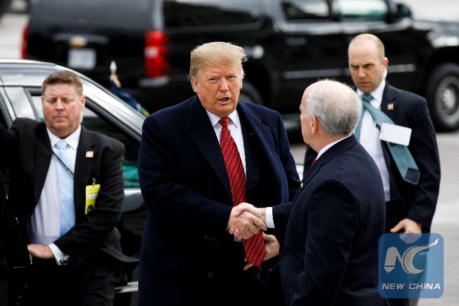 WASHINGTON, Jan. 9 (Xinhua) -- U.S. President Donald Trump on Wednesday abruptly walked out from a meeting with congressional leaders, saying later that his talks with top Democrats on ending the partial government shutdown were "a total waste of time."