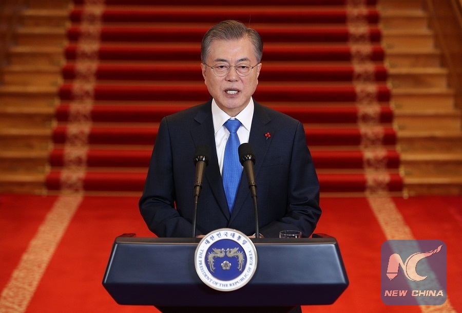 SEOUL, Jan. 10 (Xinhua) -- South Korean President Moon Jae-in welcomed the offer by Kim Jong Un, the top leader of the Democratic People's Republic of Korea (DPRK), to resume inter-Korean cooperation projects during his New Year press conference on Thursday.