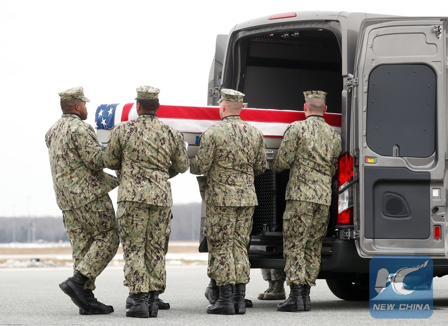A military honor guard carries the remains of Scott Wirtz, a civilian employee of the U.S. Defense Intelligence Agency killed along with three members of the U.S. military during a recent attack in Syria, during a dignified transfer ceremony at Dover Air Force Base, in Dover, Delaware, the United States, Jan. 9, 2019. (REUTERS Photo)