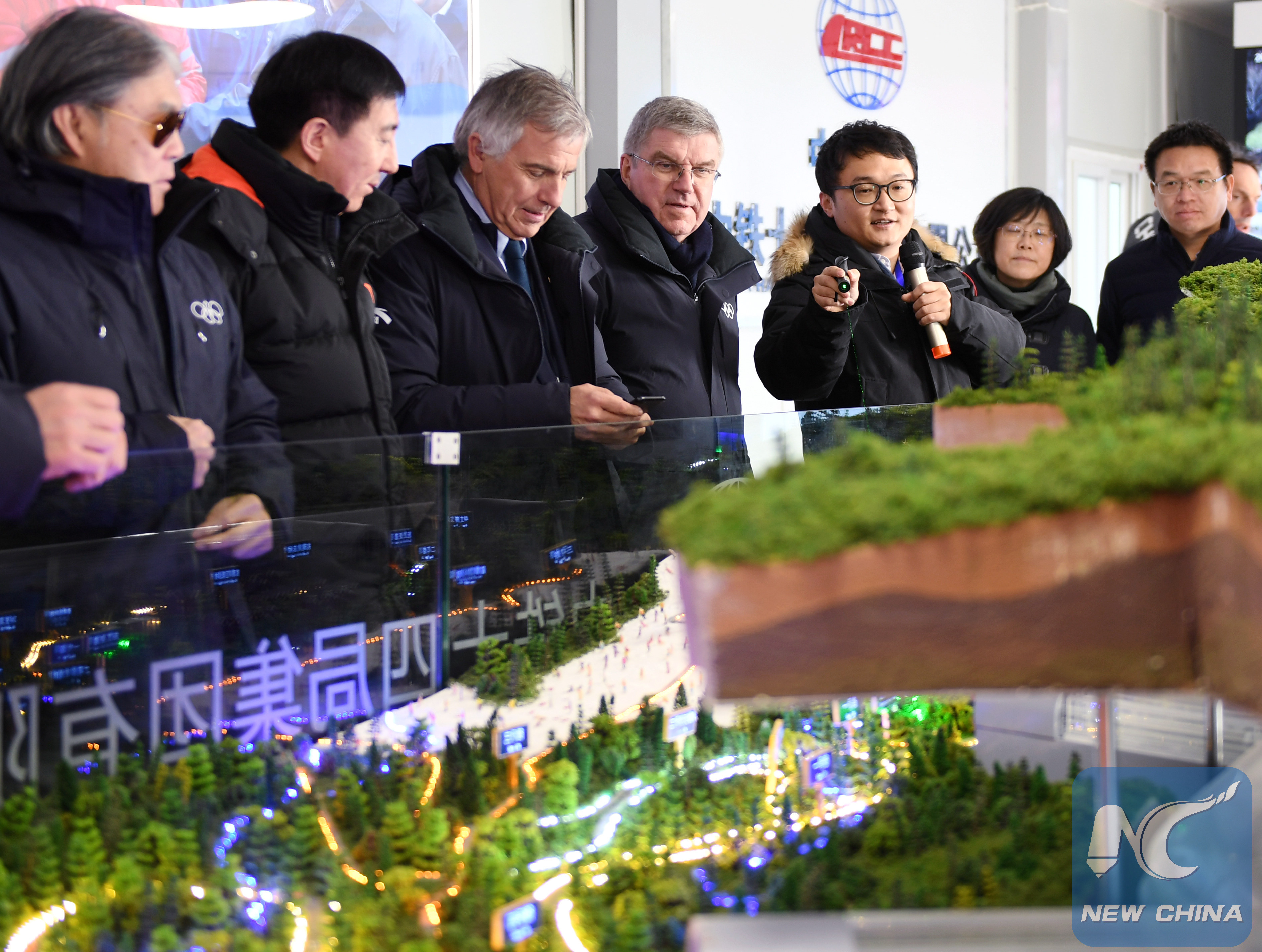 Photo taken on Jan. 29, 2019 shows Thomas Bach (4th L), president of the International Olympic Committee (IOC), visiting a venue for the Beijing 2022 Olympic Winter Games in Yanqing district of Beijing, capital of China. (Xinhua/Zhang Chenlin)