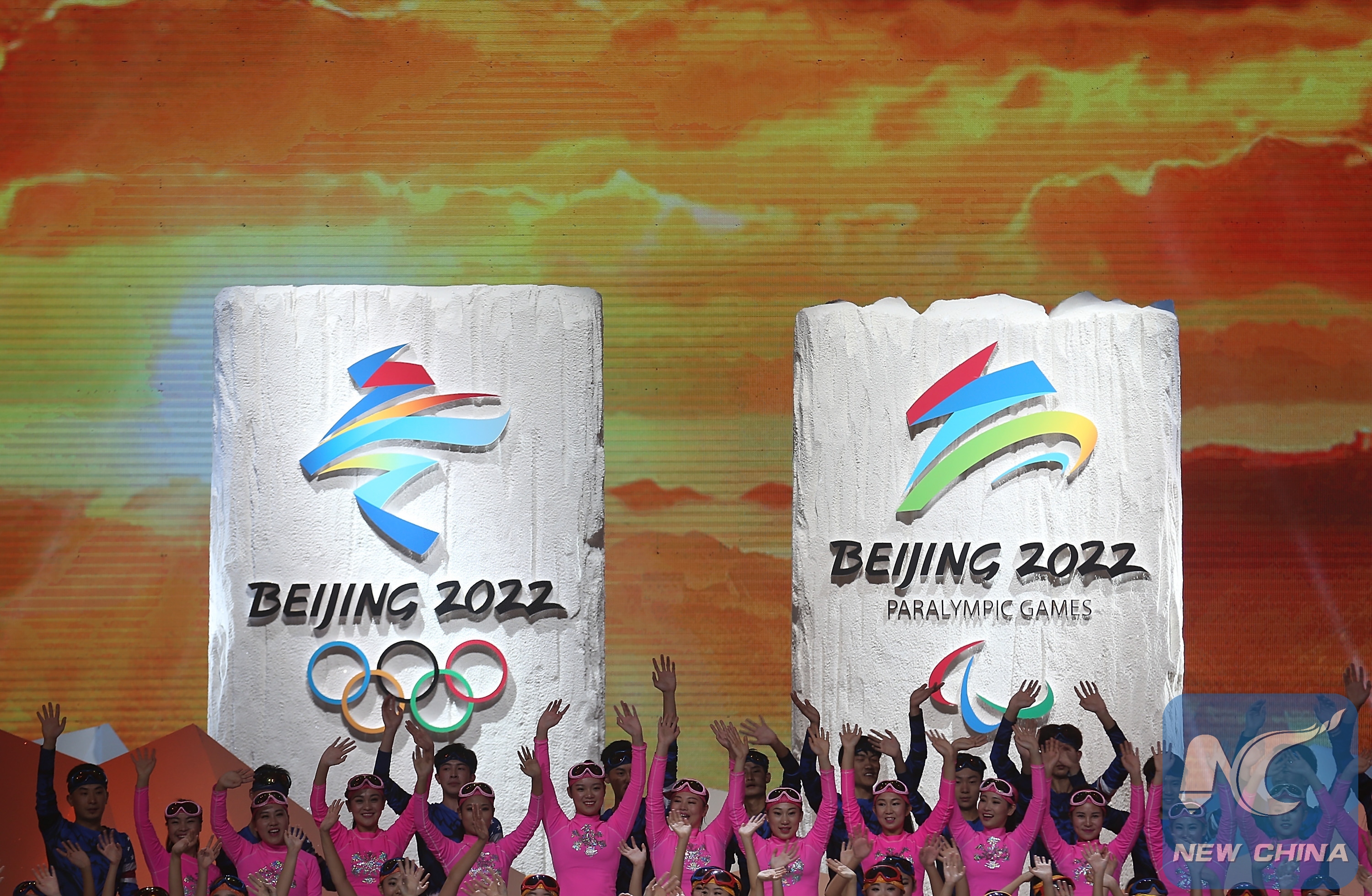 Photo taken on Dec. 15, 2017 shows the general view of the emblem launch ceremony for the Beijing 2022 Olympic and Paralympic Winter Games in Bejing, capital of China. (Xinhua/Cao Can)