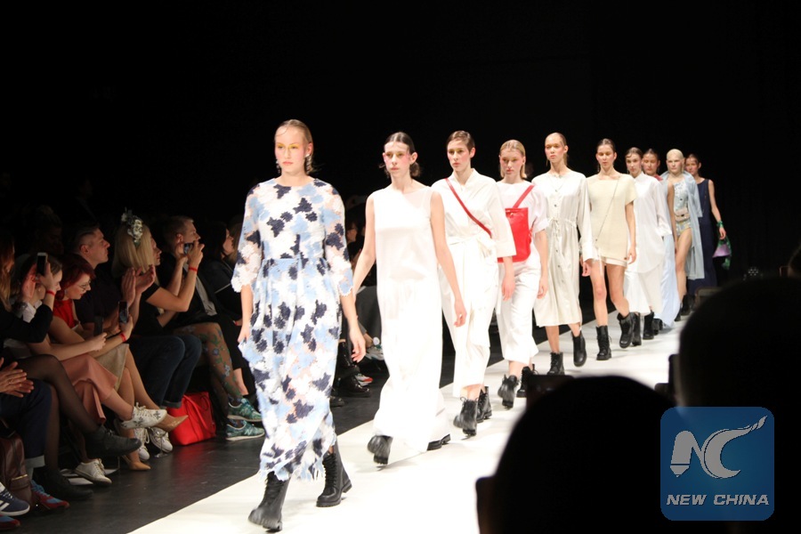 TALLINN, March 22 (Xinhua) -- Silk dress, robe and scarf at the ongoing Tallinn Fashion Week 2019 showed the growing popularity of the fabric in Estonia despite of the long winter and short summer in the northern Baltic country.