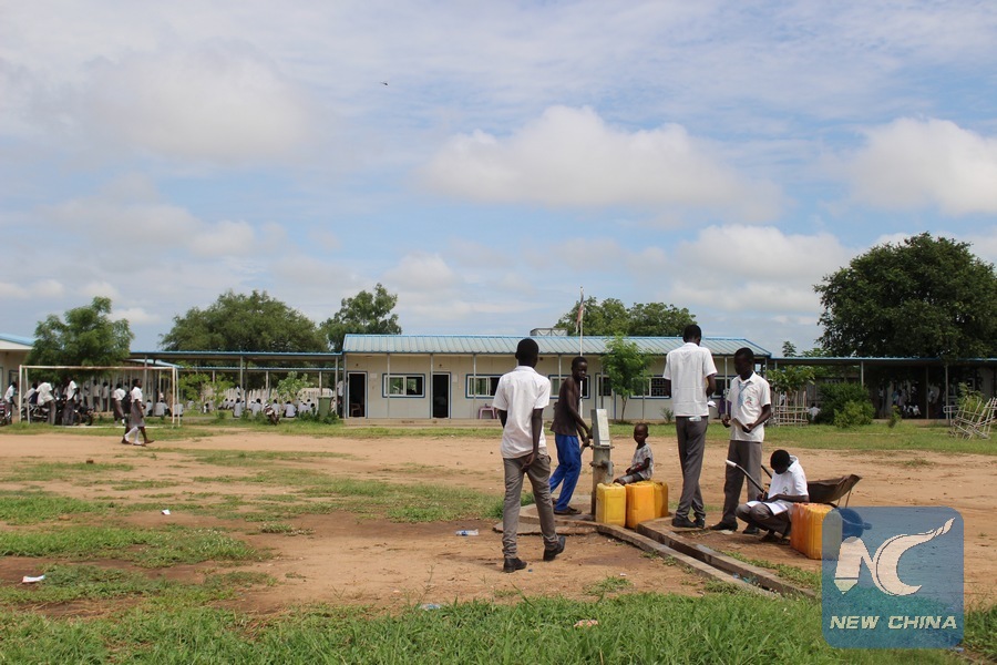 Students pump water at the Chinese Friendship Secondary School in Juba, capital of SouthSudan, Aug. 17, 2016. The School accommodates about 2,297 students. (Xinhua/Gale Julius)