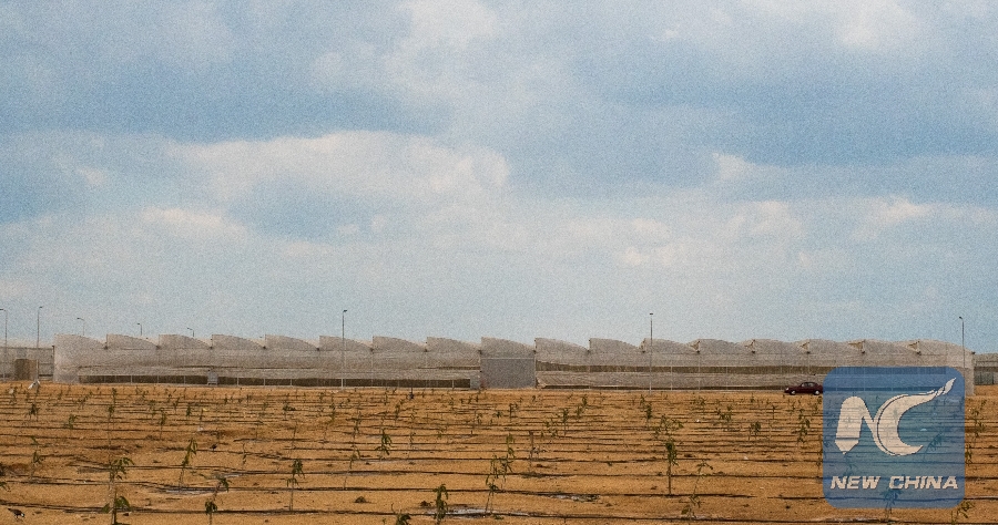 Photo taken on March 25, 2019 shows greenhouses of a large joint project in the northeast of the Egyptian capital Cairo. (Xinhua/Wu Huiwo)