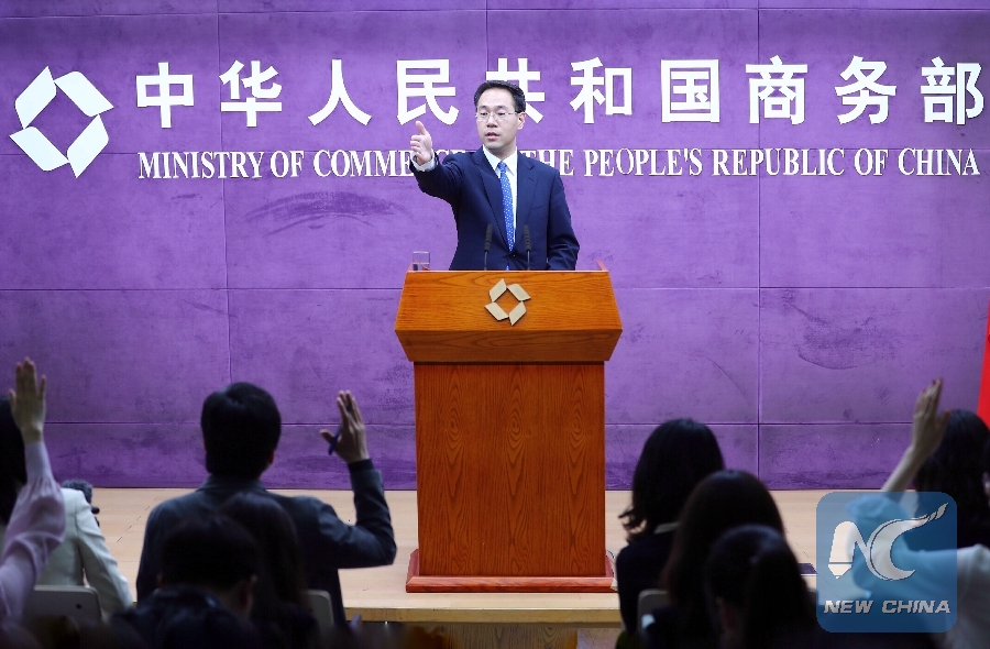 China's Ministry of Commerce spokesperson Gao Feng said during a press conference in Beijing on May 16, 2019, that the United States has continuously and unilaterally been escalating trade disputes and caused serious setbacks in China-U.S. trade talks. (Xinhua/Zhang Yuwei)