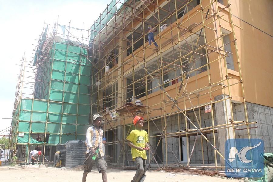 Photo taken on April 16, 2019 shows a building under construction in Juba, South Sudan. The project is part of a 33 million U.S. dollar medical assistance provided by the Chinese government to improve South Sudan's health sector. Phase one of the China-aided project which kicked off in November 2017 is nearing completion. (Xinhua/Gale Julius)