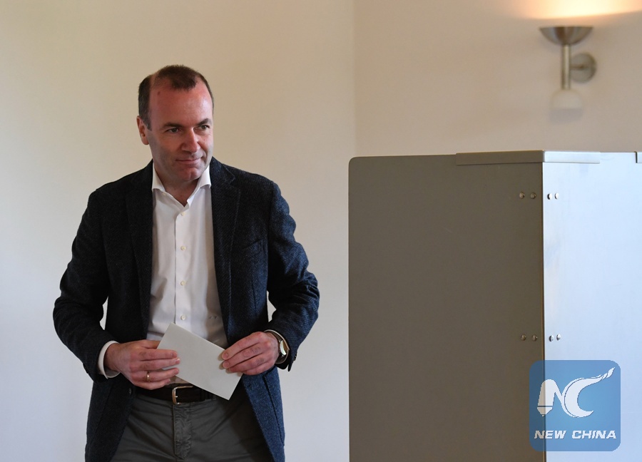 Manfred Weber, the top candidate of the European People's Party (EPP) for the European elections, votes at a polling station in Wildenberg, Germany, on May 26, 2019. Voters in Germany cast their ballots on Sunday in elections to the European Parliament (EP). (Xinhua/Lu Yang)