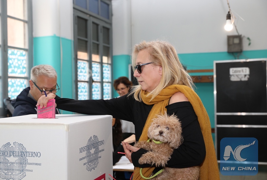 A woman votes at a polling station in Rome, Italy, May 26, 2019. The European Parliament (EU) elections started in Italy on Sunday. (Xinhua/Cheng Tingting)