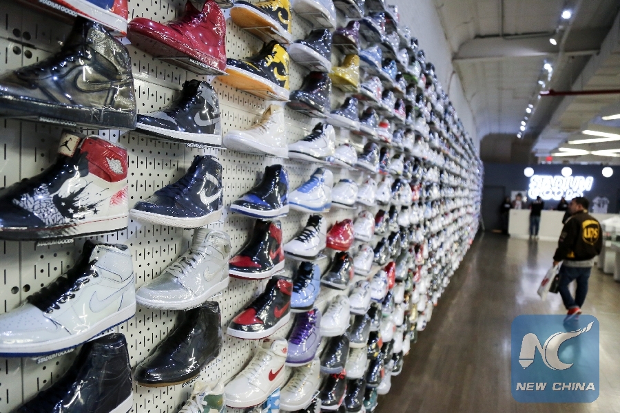 FILE PHOTO: A customer looks around at a store of Stadium Goods in New York, the United States, on Nov. 8, 2017. (Xinhua/Wang Ying)