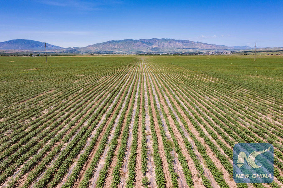Cotton fields are seen in this photo taken in Dangara, Tajikistan on May 24, 2019. (Xinhua/Zhang Ruoxuan)