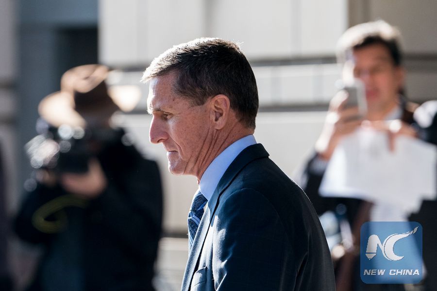 Former U.S. National Security Adviser Michael Flynn leaves the federal court following his plea hearing in Washington D.C., the United States, on Dec. 1, 2017. (Xinhua/Ting Shen)