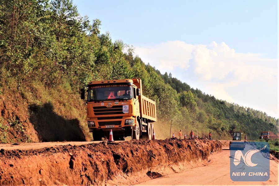 File photo shows workers of China's Sinohydro Corporation Limited work at the construction site of the Huye-Kibeho-Munini Road Upgrading Project in Huye district, Southern Province of Rwanda, on May 31, 2019. (Xinhua/Sinohydro Corporation Limited)