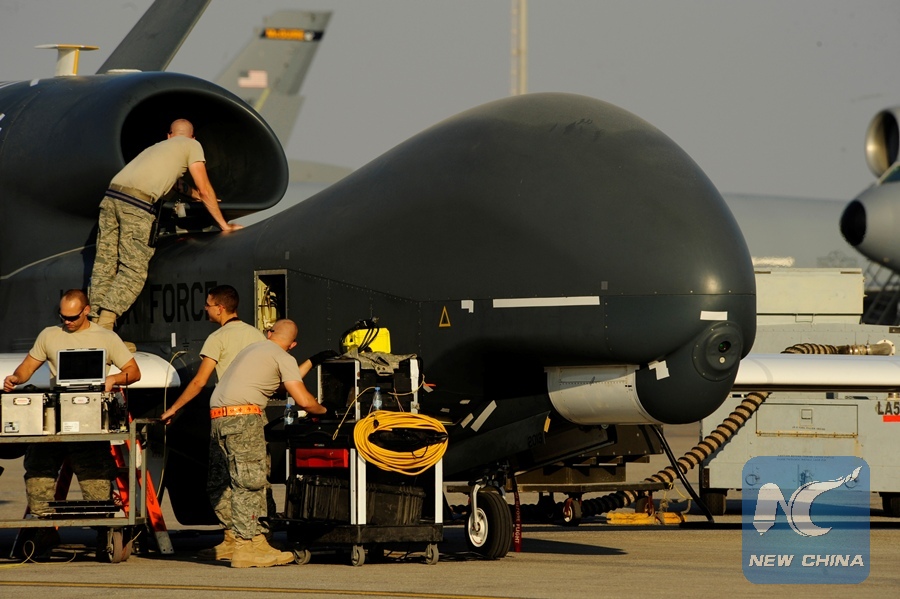 U.S. Air Force maintainers prepare a U.S. military drone RQ-4A Global Hawk for takeoff at an undisclosed location in Southwest Asia, Dec. 2, 2010. (REUTERS Photo)