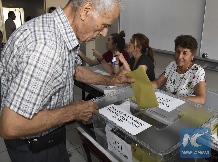 A man casts his ballot at a polling station in Istanbul, Turkey, June 23, 2019. (Xinhua/Xu Suhui)