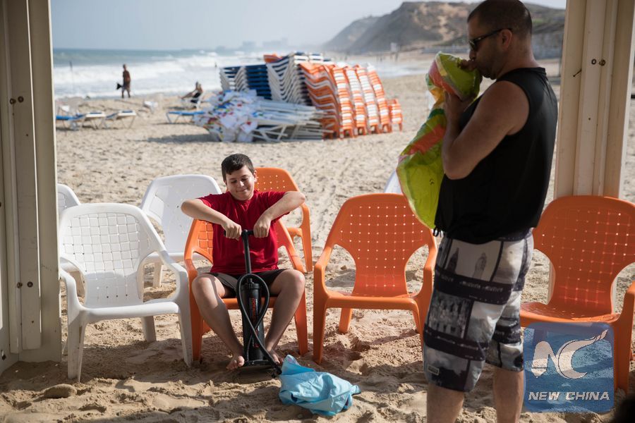JERUSALEM, July 15 (Xinhua) -- It was a hot July morning at the Tel Aviv beach, where the waves were as high as the humidity under the scorching sun.