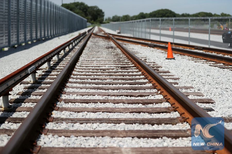 Photo taken on July 17, 2018 shows an 800-meter track, where all the assembled cars will be speed-tested, along the outer edge of the China Railway Rolling Stock Corporation (CRRC) factory area in Chicago, the United States. (Xinhua/Wang Ping)