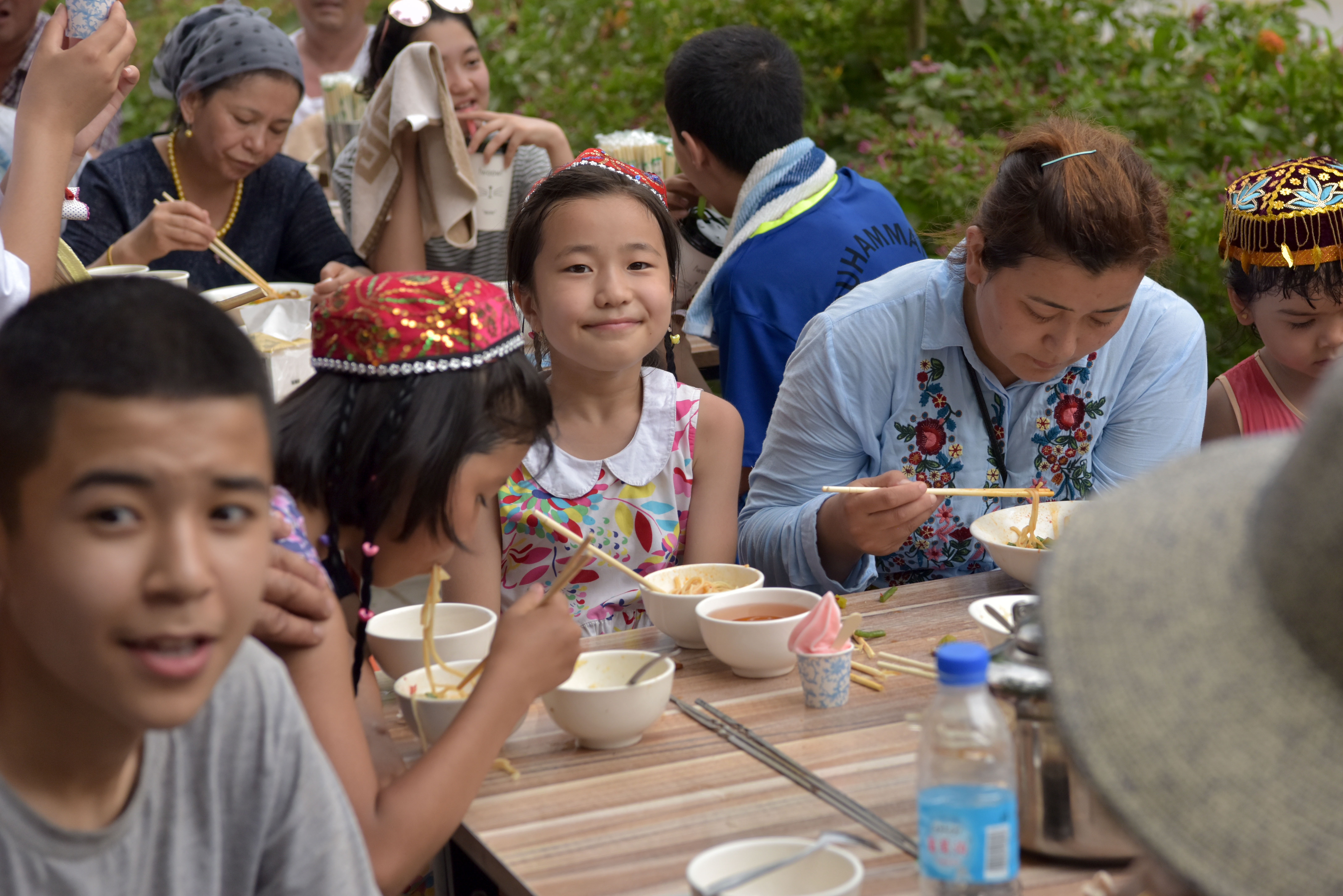 Tourists have meals at the "Sand Therapy Town" in Turpan. (Xinhua/Ding Lei)