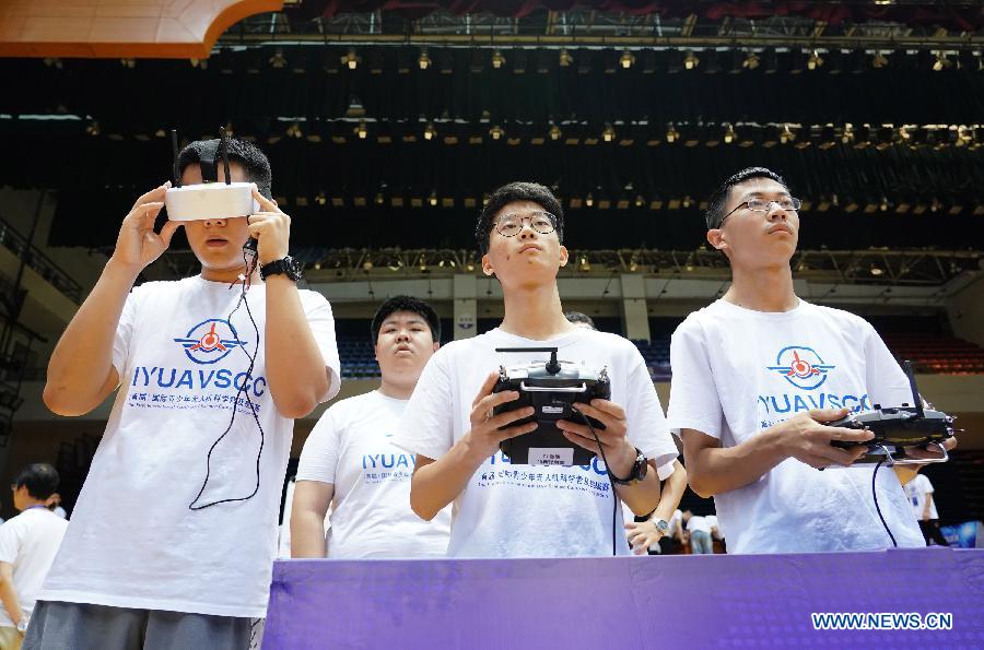 Contestants control unmanned aerial vehicles (UAV) during the first International Youth UAV Science Camp & Competition (IYUAVSCC) in Xi'an, northwest China's Shaanxi Province, July 21, 2019. The first IYUAVSCC, launched by Chinese Society of Aeronautics and Astronautics (CSAA) and Northwestern Polytechnical University, kicked off here on Monday, attracting high school students from home and abroad. (Xinhua/Shao Rui)