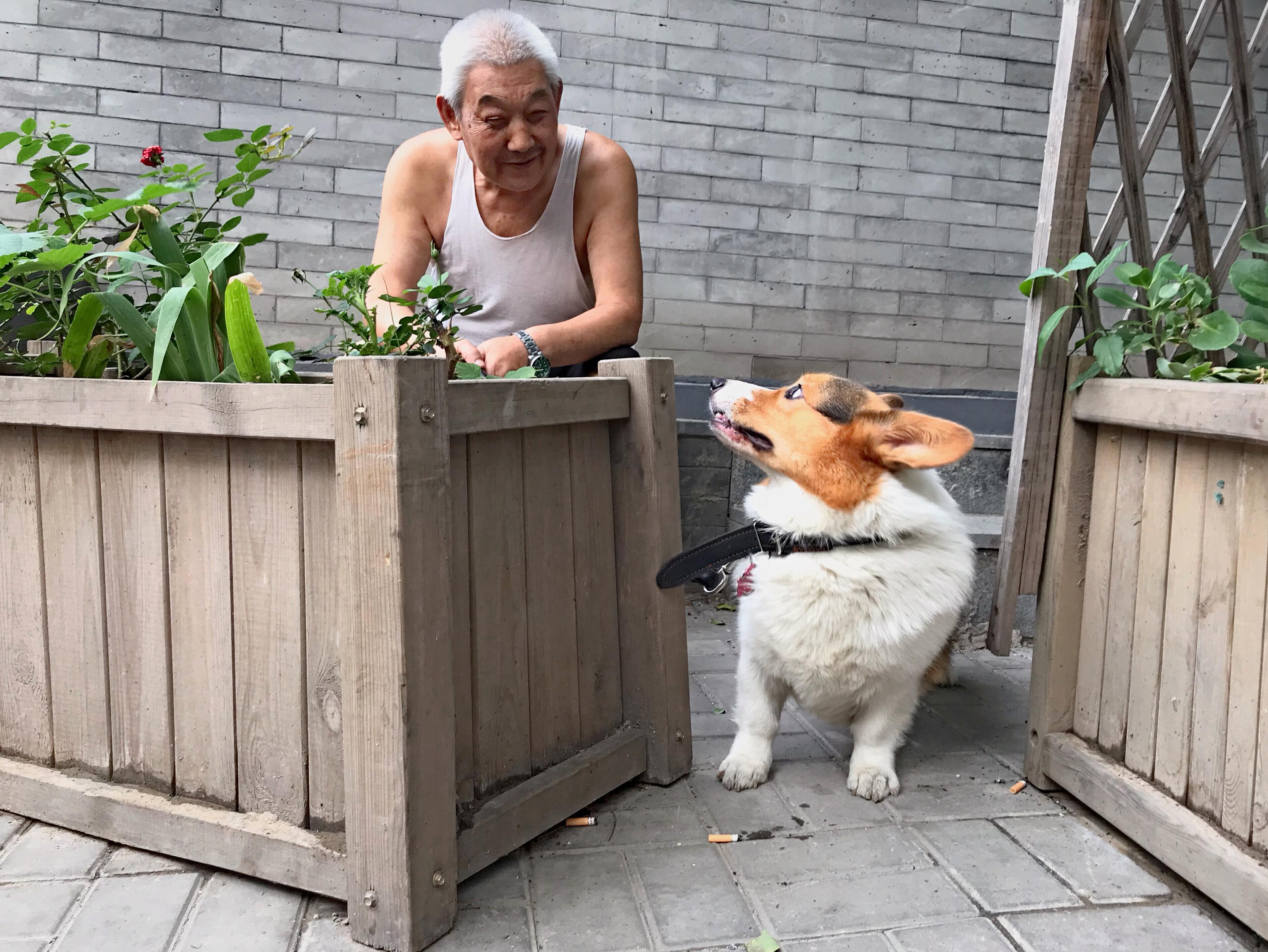 Mobile photo shows a man cooling off with his pet dog on Beiluogu Alley in Beijing, capital of China, July 21, 2019. (Xinhua/Meng Tao)
