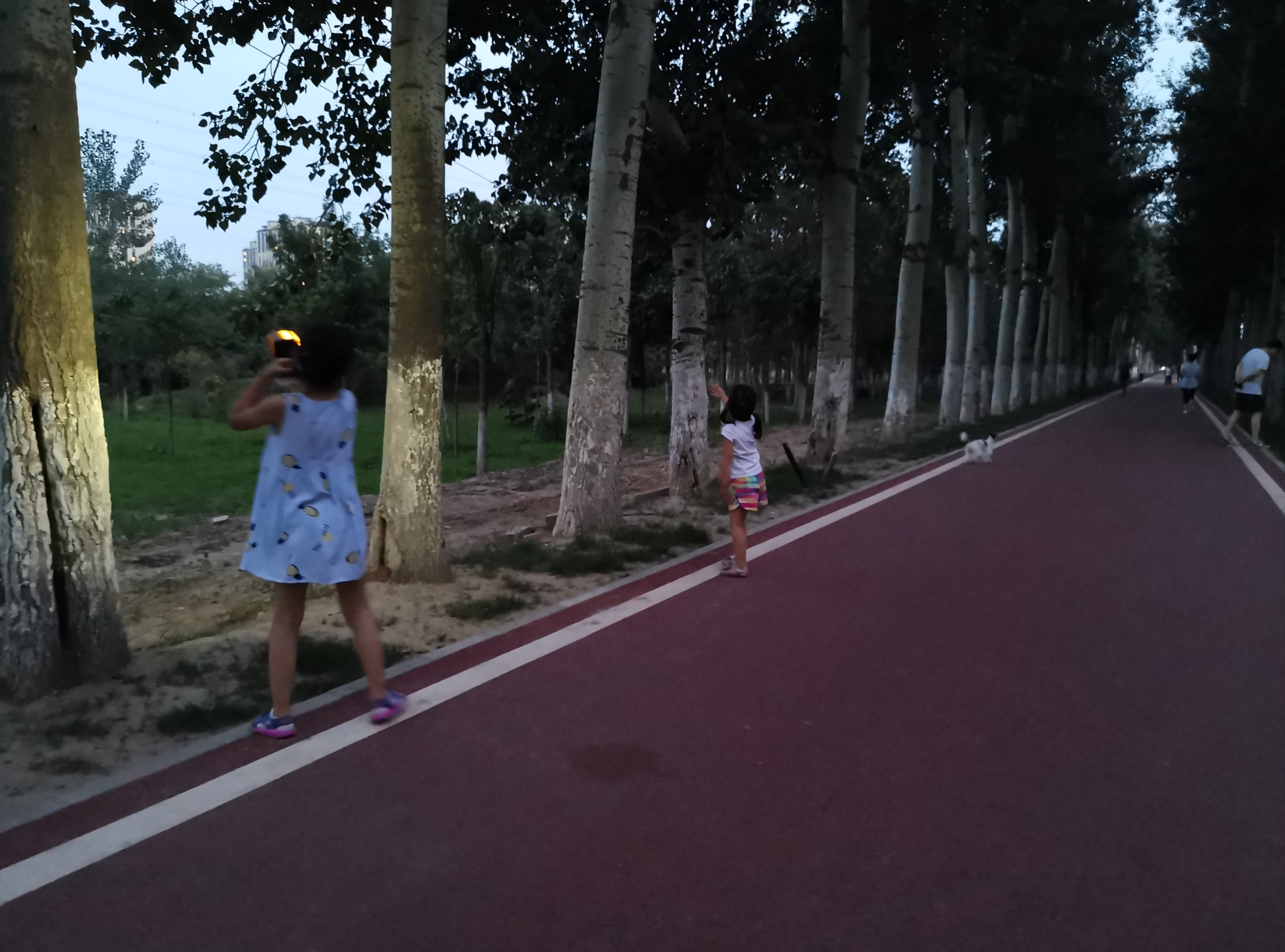 Mobile photo shows two girls looking for cicadas in Daxing District of Beijing, capital of China, July 12, 2019. (Xinhua/Yu Yang)