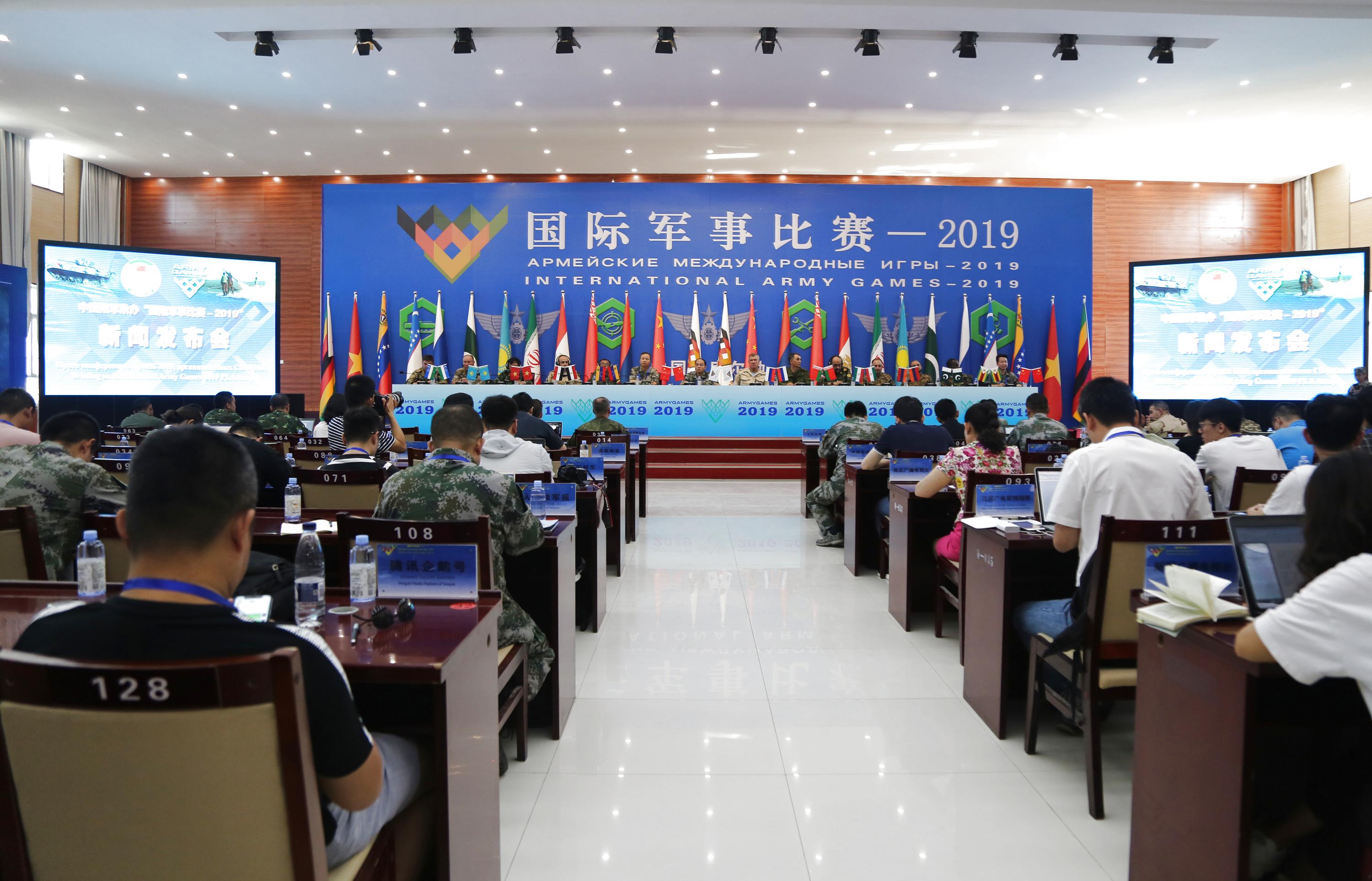 Photo taken on August 2, 2019 shows the press conference of the upcoming International Army Games 2019 in Urumqi, Xinjiang Uygur Autonomous Region. (Xinhua/Zhao Zhiguo)