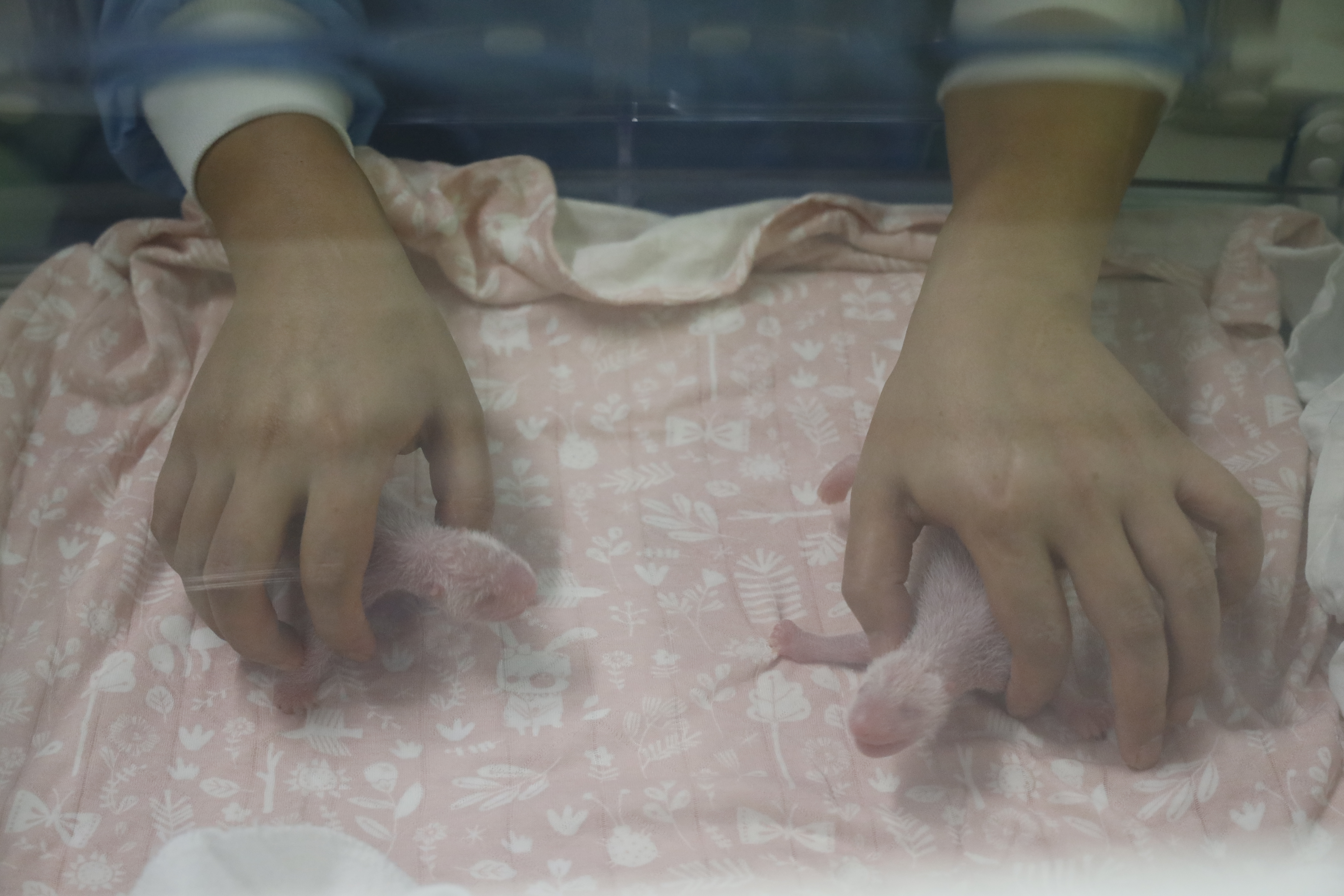 The birth of one male cub, 160 grams, and one female cub, 150 grams, comes as no great surprise since mother Hao Hao had been successfully inseminated last April by male companion Xing Hui.