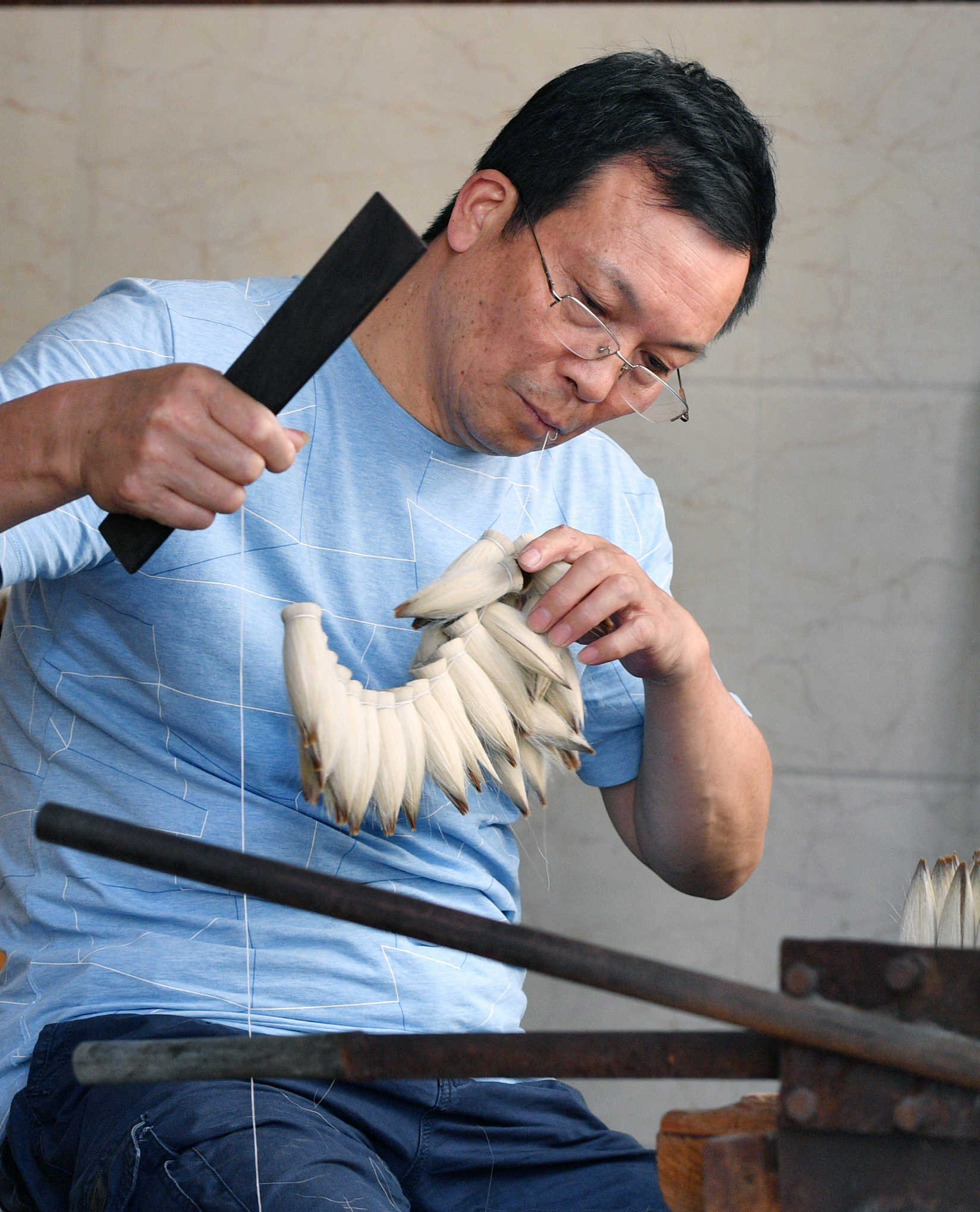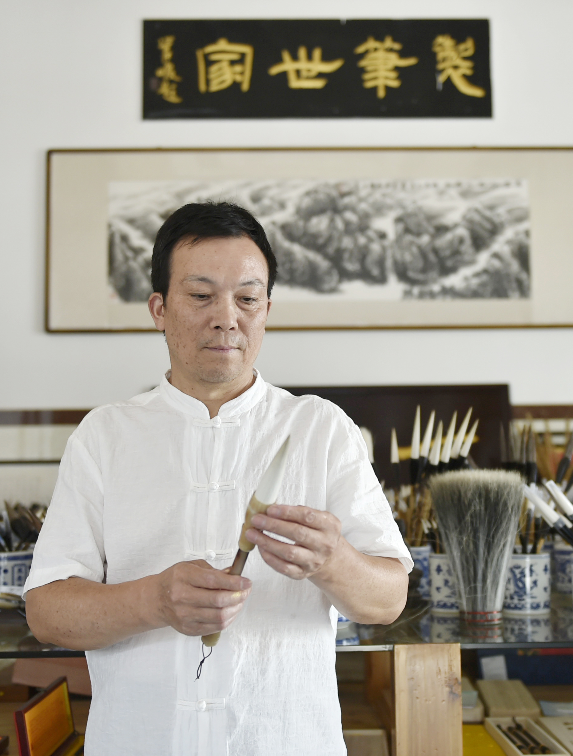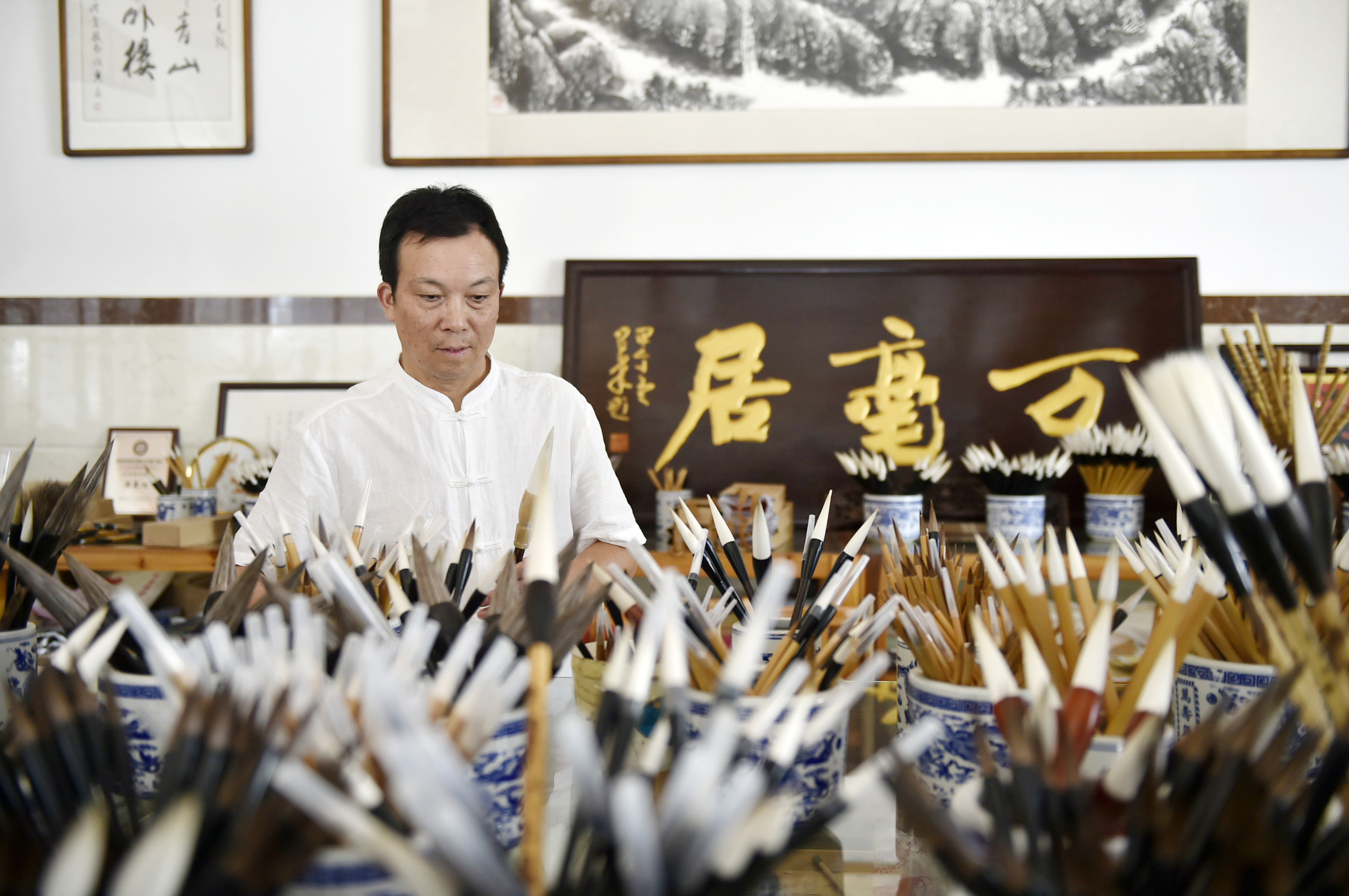 As the inheritor of traditional skills of making Wengang Brush Pen, an intangible cultural heritage of east China's Jiangxi Province, Zhou not only inherited the traditional techniques but also innovated the methods of making brush pen. To better pass on the making techniques of brush pen, Zhou has endeavored to receive and train apprentices and the younger generation of his family.
