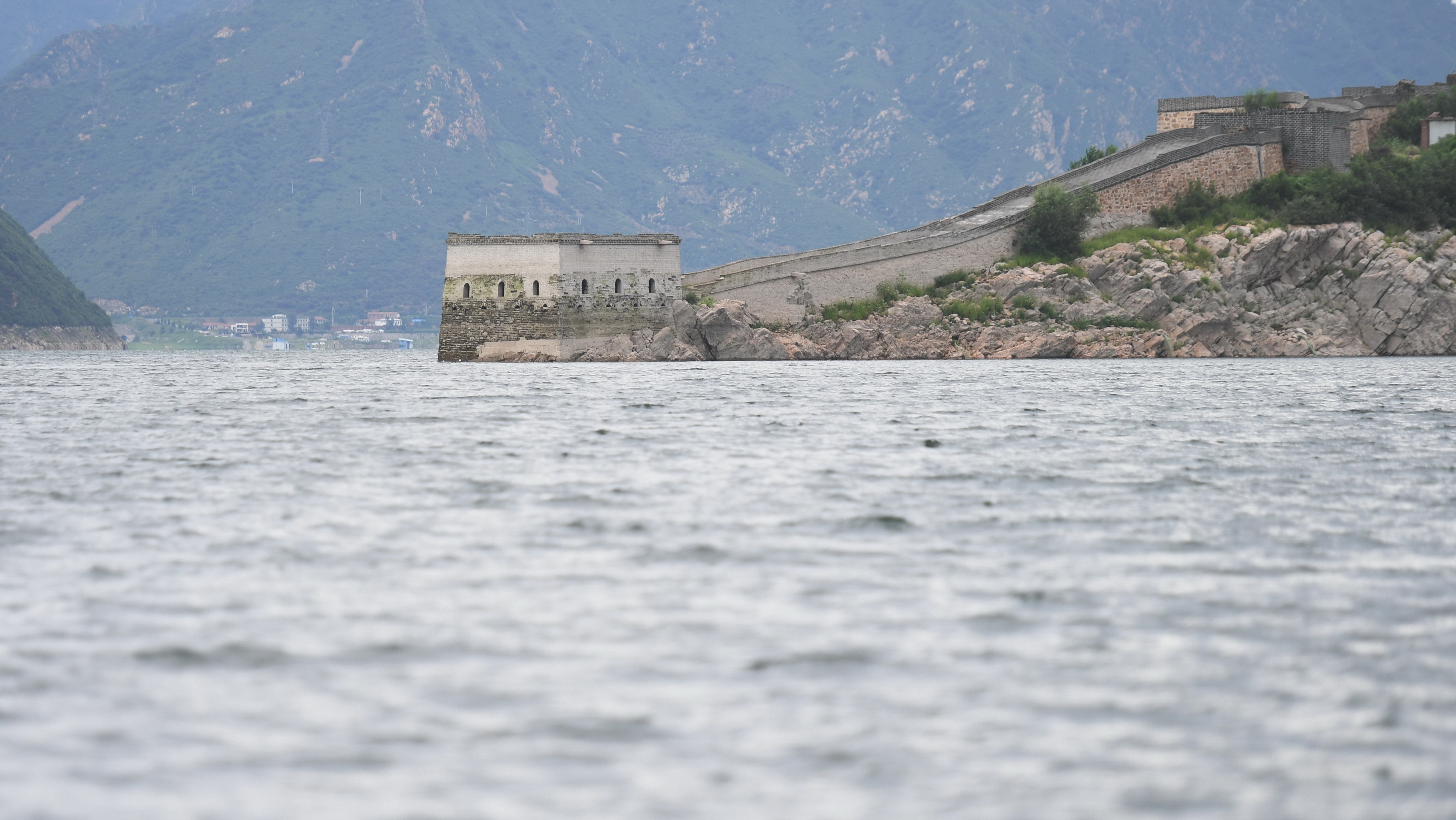 Photo taken on Aug. 13, 2019 shows a section of the Great Wall in Panjiakou reservoir in north China's Hebei Province. (Xinhua/Zhu Xudong)