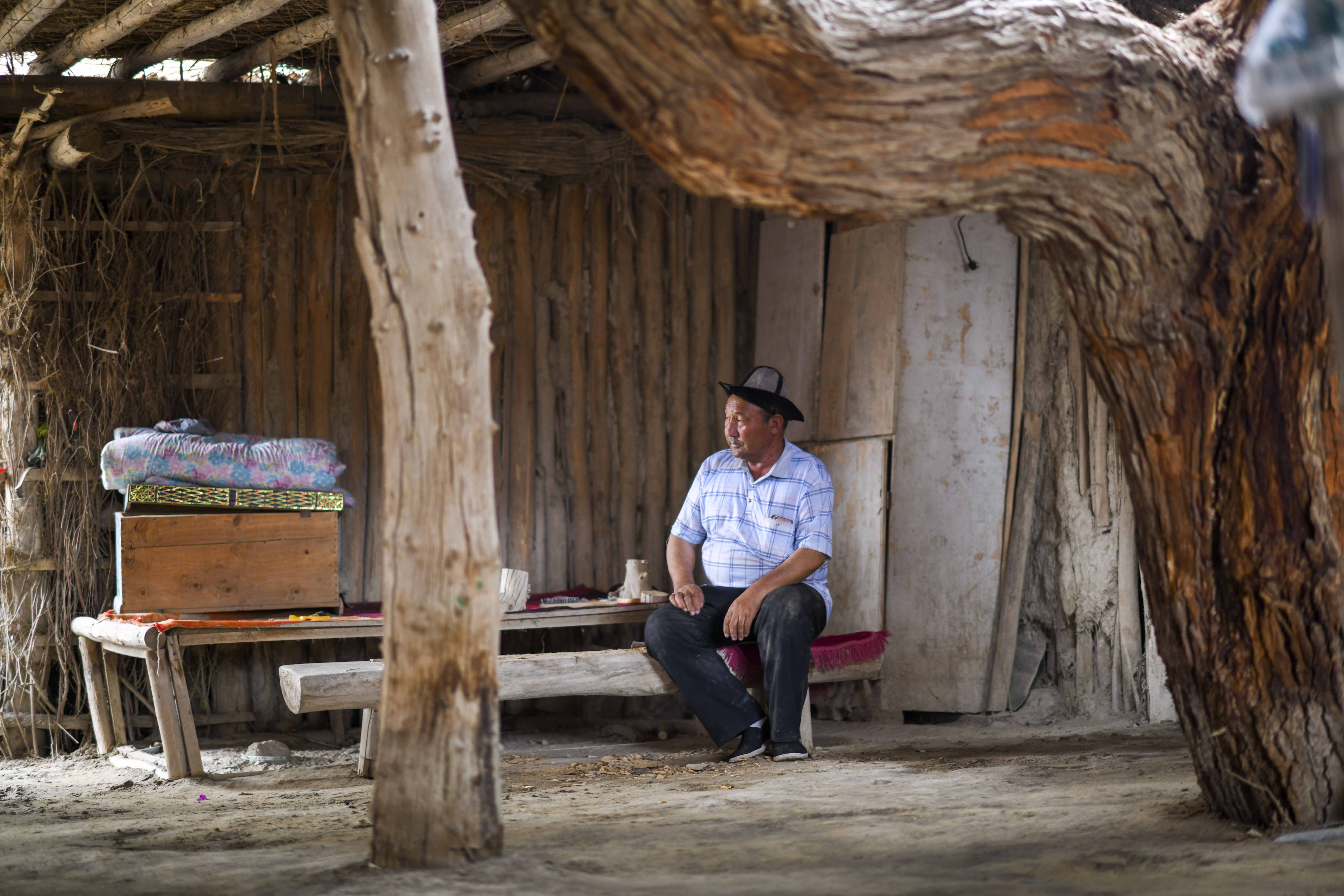 Amudun Abudu rests at home in Lop Nur People Village in Yuli County, northwest China's Xinjiang Uygur Autonomous Region. (Xinhua/Zhao Ge)
