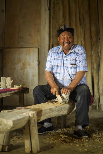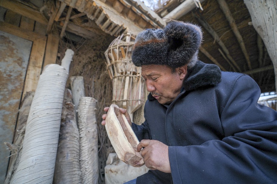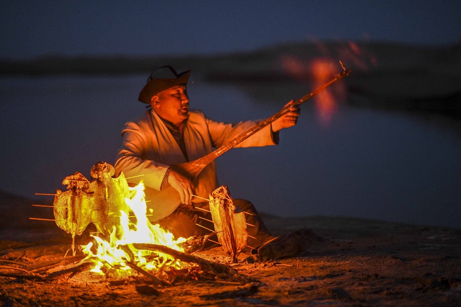 During the peak tourist season from June to October, Amudun grills fish with his secret sauce, and in the off-season, he makes handicrafts with desert poplar wood to sell when the tourists return.