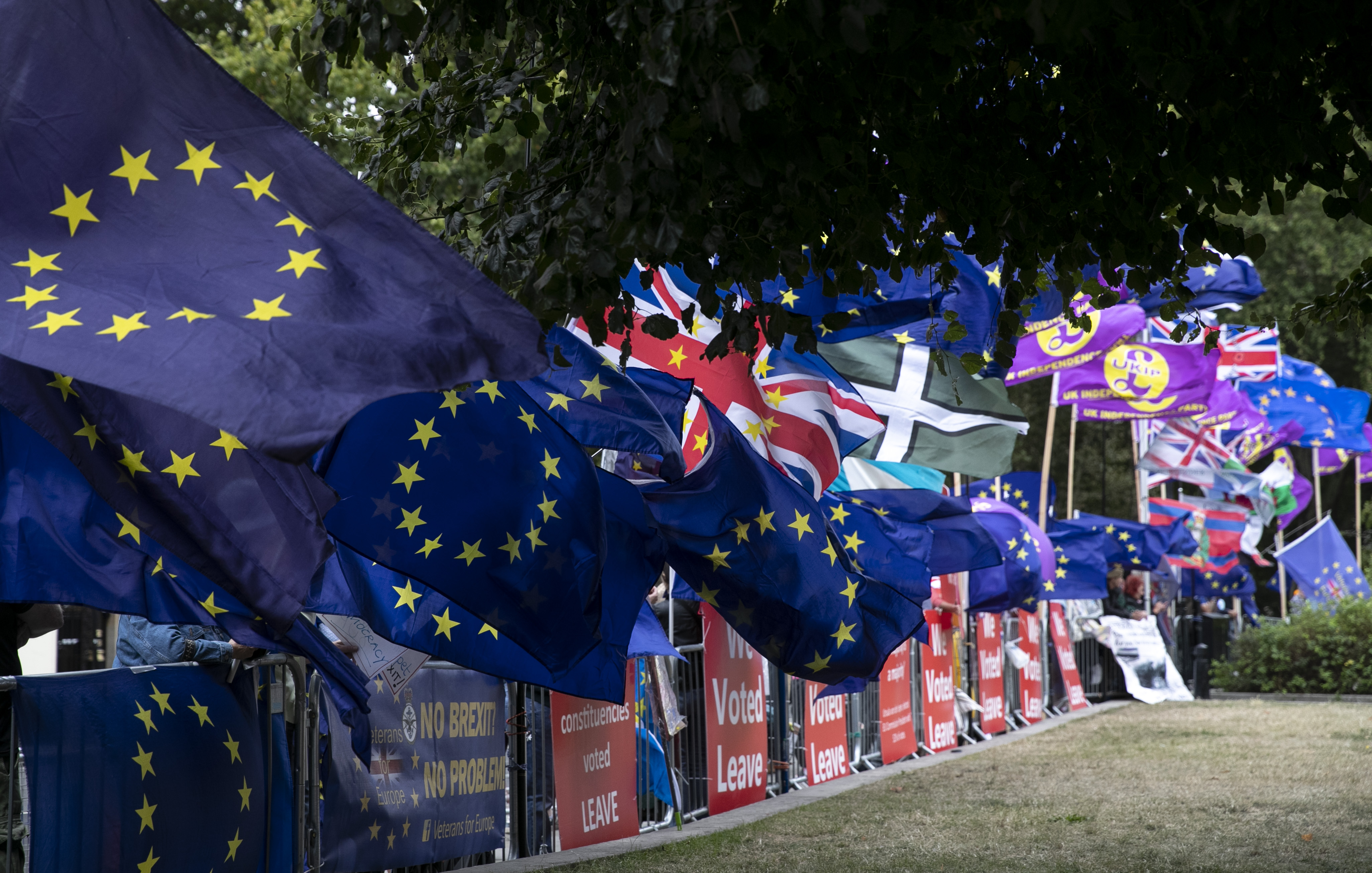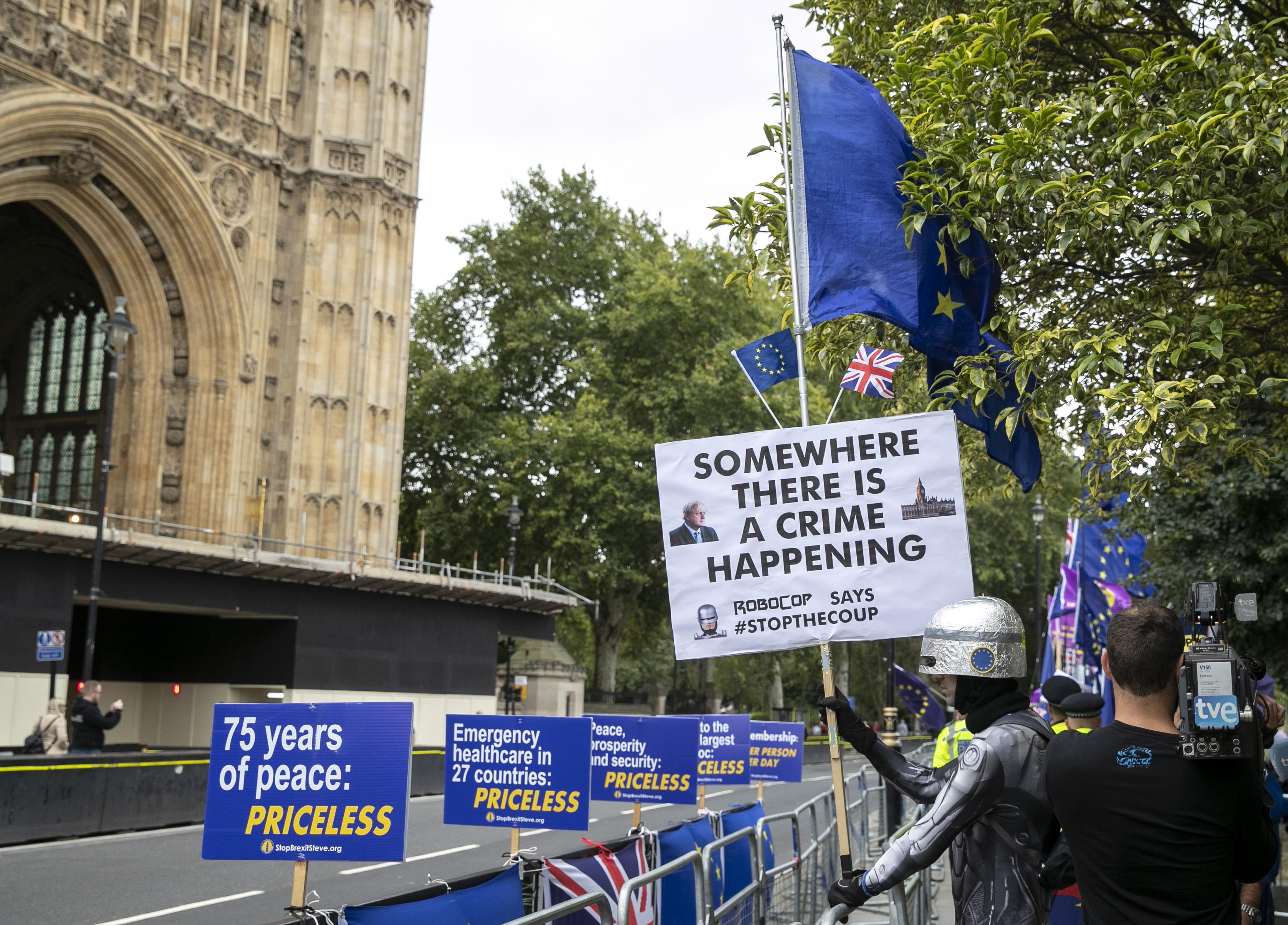 Demonstrators gather outside the Houses of Parliament in London, Britain, Sept. 3, 2019.(Photo by Tim Ireland/Xinhua)
