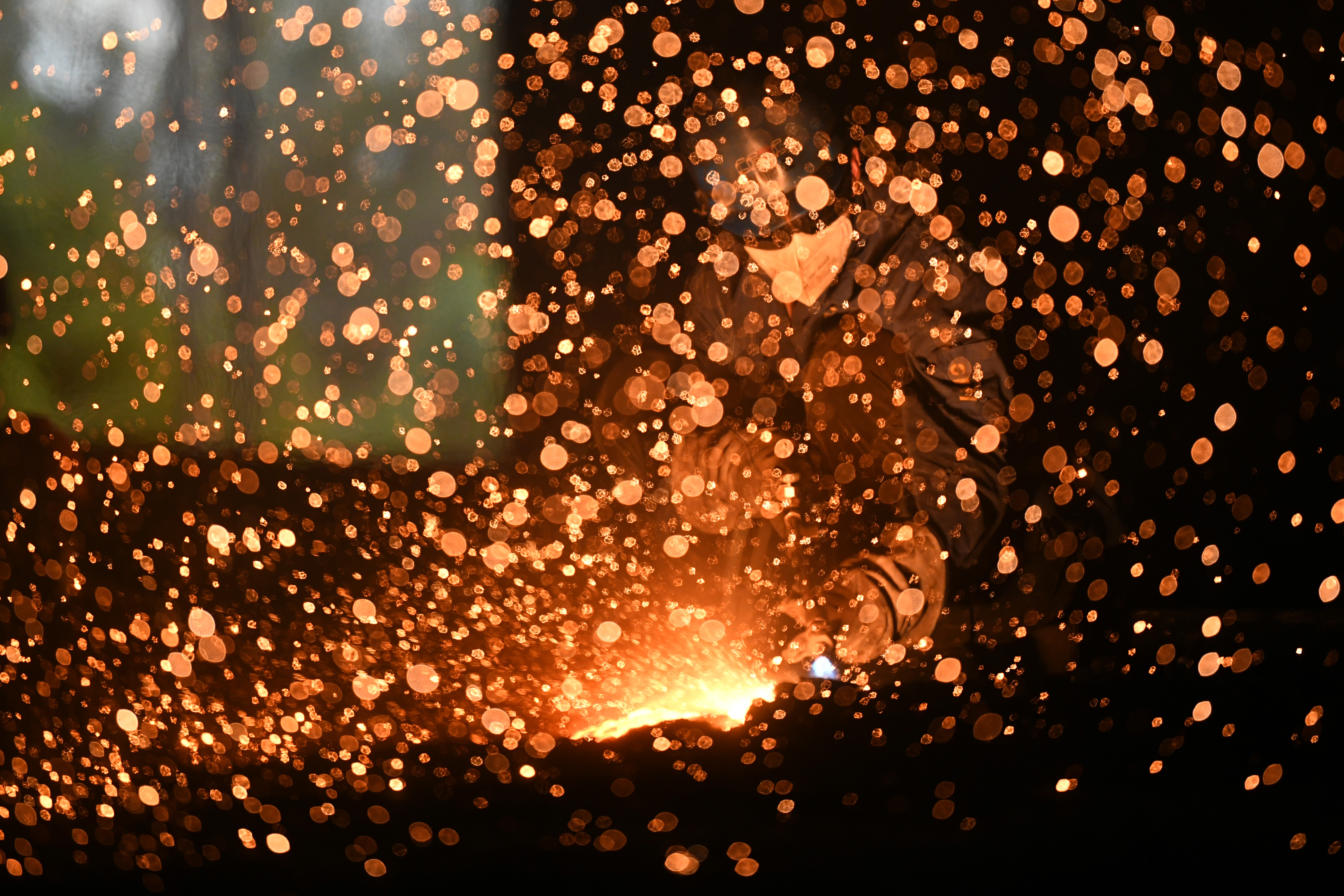 A worker welds components at a factory of Harbin Turbine Company Limited in Harbin, Sept. 3, 2019. (Xinhua/Wang Jianwei)